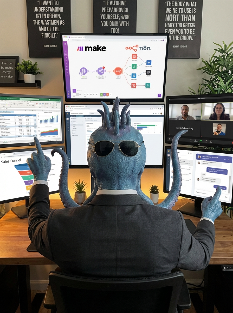 Te ayudamos a optimizar todos los procesos de tu negocio (empezando por el caos administrativo), para que tu empresa escale sin sumar más personal, sin errores, y sin depender de herramientas mal conectadas.